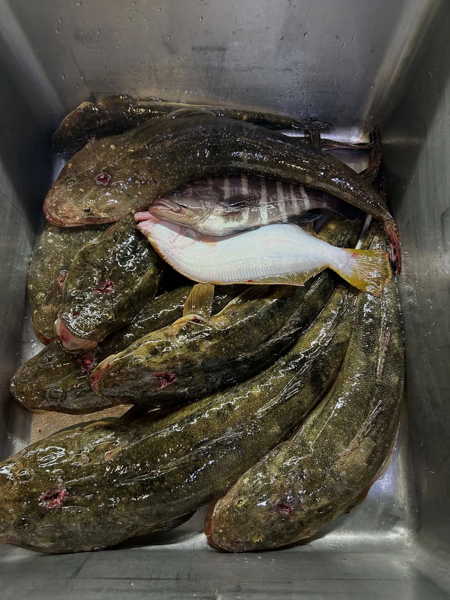 昨日、友人の『町⚪︎さん』のプレジャーボートでマゴチ釣りに行ってきました。😅😅釣り仲間の『野⚪︎君』お客様の『宮⚪︎さん』自分の4人での釣行になりました。北東の風が吹く中、木更津方面から富津沖目指して約1時間、風と波の影響で船速を落としてなんとか到着、風裏での釣りとなりました。思うような釣りが出来ずに困っておりましたが、ある㊙️の場所を見つけて、4人全員【マゴチ】ゲット出来ました。4人全員の釣果ではありますが、【マゴチ】10本【ソゲ】1枚【マハタ】1匹…〈サバフグ〉多数〈イカ?〉等等😅😅今週末位が食べごろかと思います。😅🙇♂️